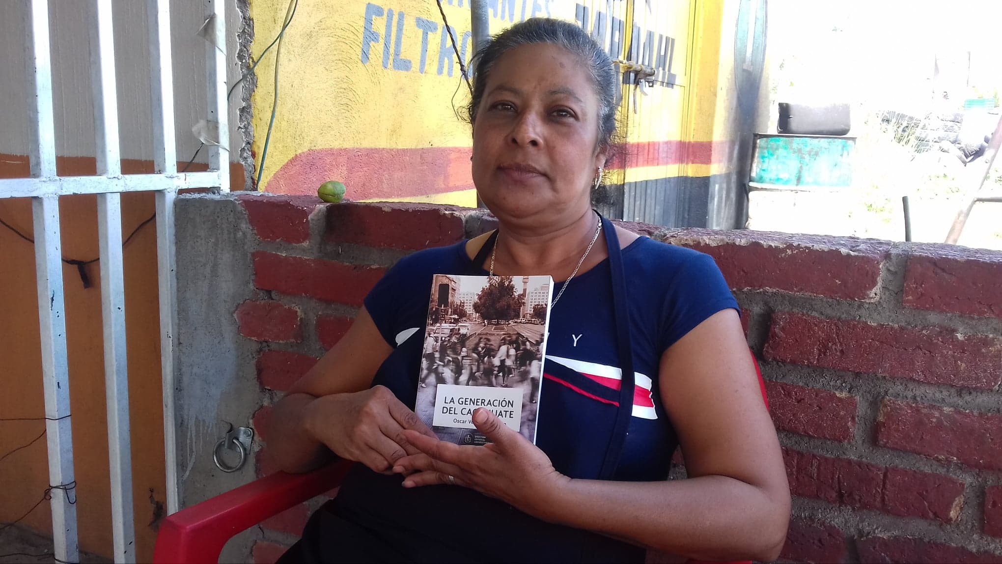 (La señora Adela; mi libro La Generación del Cacahuate en buenas manos. Foto: Oscar Verdín/relatosnayarit)