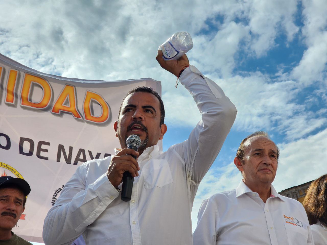 (Oscar Cedano al micrófono, durante una manifestación en septiembre. Foto: SUTSEM)