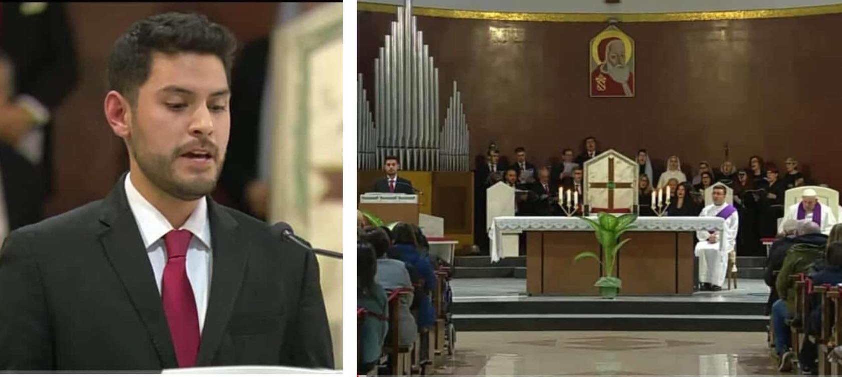 * Edson Agustín Paredes Ramos cantó el salmo en Italiano, el viernes ocho, durante la misa del Papa en la parroquia de San Pío V.