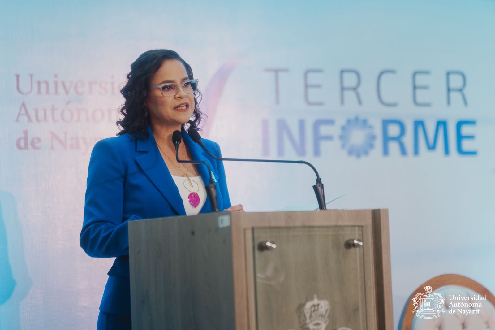 Al rendir su tercer informe de actividades al frente a la Universidad Autónoma de Nayarit (UAN), la rectora Norma Liliana Galván Meza pronunció un mensaje del que se destacan diversos puntos.