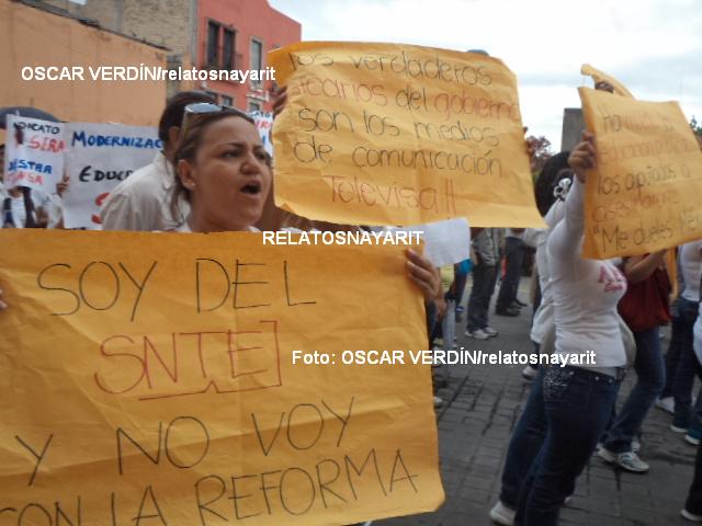 (Marcha de maestros a principios de septiembre. Foto: Oscar Verdín/relatosnayarit)