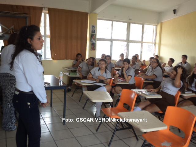 La explicación de una funcionaria del Poder Judicial del Estado parece sacudir a adolescentes de la secundaria técnica Emilio M. González, en la colonia SPAUAN.