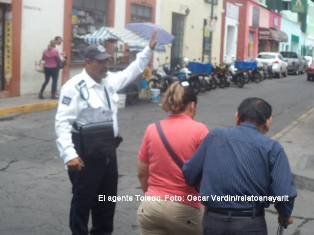 José Margarito Toledo Rivera es un agente de la Policía Vial del Ayuntamiento de Tepic que este jueves trabajó en la esquina de las calles Veracruz y Morelos.