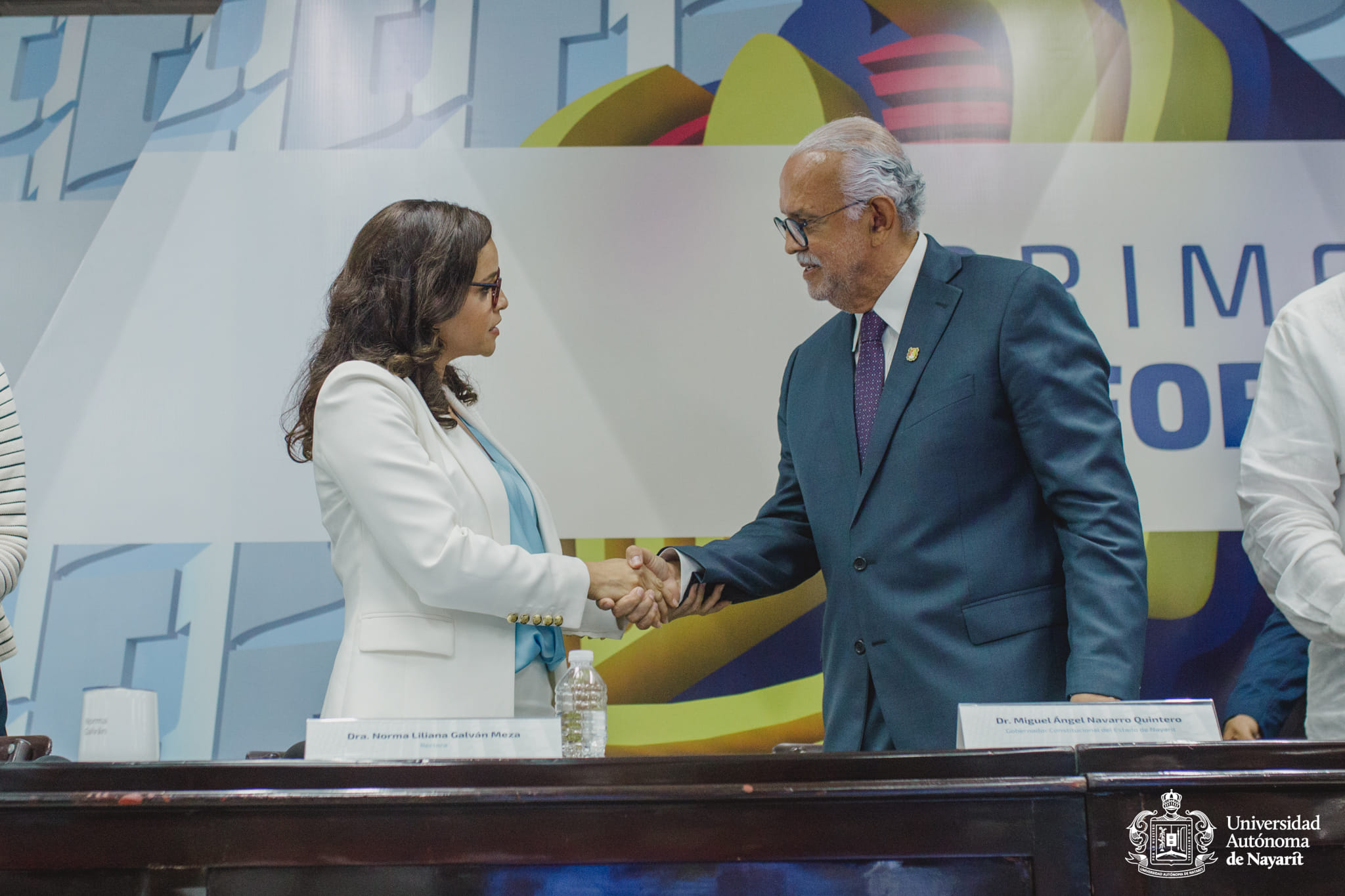 Este viernes, la rectora de la Universidad Autónoma de Nayarit (UAN) Norma Liliana Galván Meza presentó su primer informe de labores ante el Consejo General Universitario, evento al que asistió como invitado especial el gobernador Miguel Ángel Navarro Quintero.