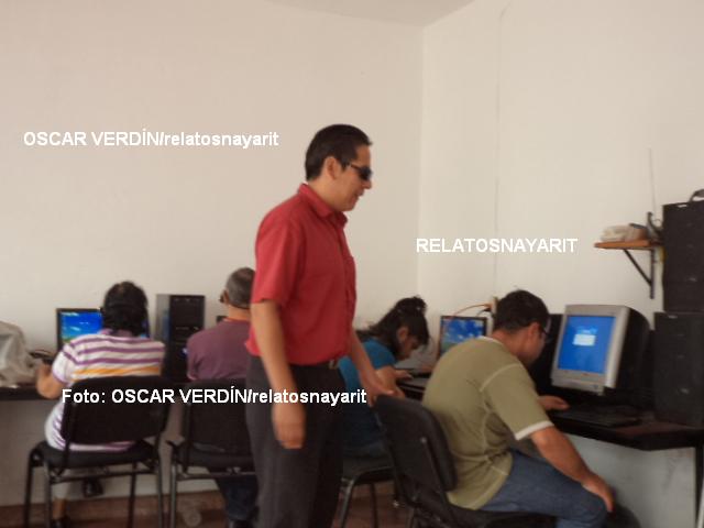 Como buen maestro, Gilberto tiene toda la calma para que los estudiantes conozcan el teclado y sus herramientas. Se mueve alrededor de ellos y atiende cualquier duda. Cada uno trabaja en una computadora con adaptación especial para ciegos, que habla.