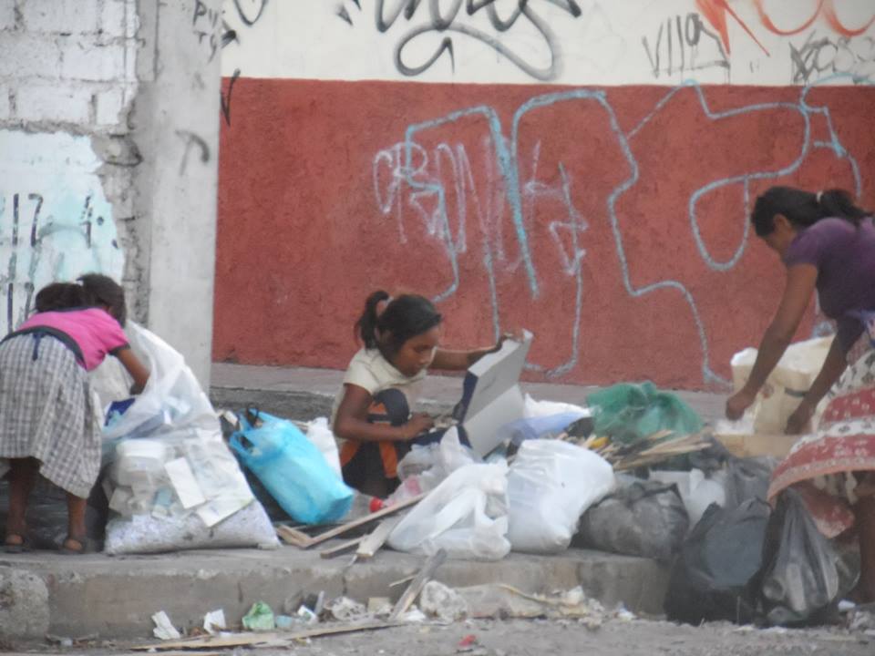 “Cuando la niña más grande encuentra la bolsa con mangos, avisa a su hermana y a su mamá y le dicen como un ‘órale, que bien’. La niña toma un mango y se lo lleva a la boca, le da un jalón a la cáscara para pelarlo. La búsqueda siguió en la basura un poco más, se llevaron la bolsa con los mangos y unas botellas de plástico”.